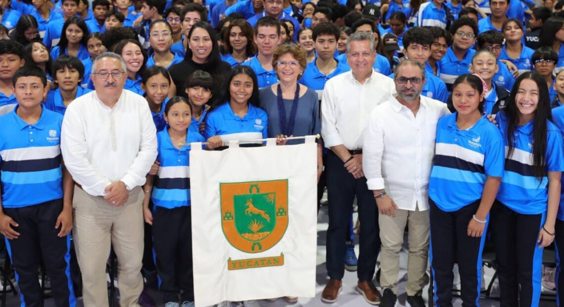 Desde el Multigimnasio “Socorro Cerón Herrera” del Complejo Deportivo Kukulcán, Fritz Sierra entregó la bandera con el escudo del estado a la delegación que participará en 36 disciplinas deportivas, a quienes les deseo mucho éxito y les invitó a llevar consigo con mucho orgullo el nombre y marca de Yucatán.