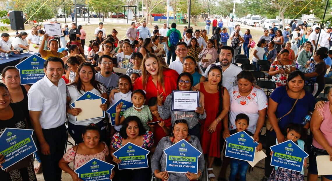 Para reafirmar el compromiso de un Ayuntamiento ordenado, solidario y con justicia social, la Presidenta Municipal de Mérida, Cecilia Patrón Laviada, entregó acciones de vivienda a familias del sur en la colonia Nueva San José Tecoh.