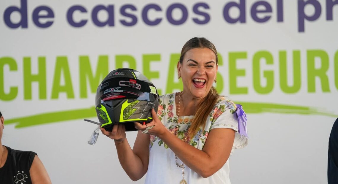 A través del programa “Chambea Seguro”, Cecilia Patrón Laviada, presidenta municipal de Mérida, entregó de manera gratuita 150 cascos certificados con la Norma DOT a trabajadores de plataformas que utilizan motocicleta como herramienta para el ingreso familiar.
