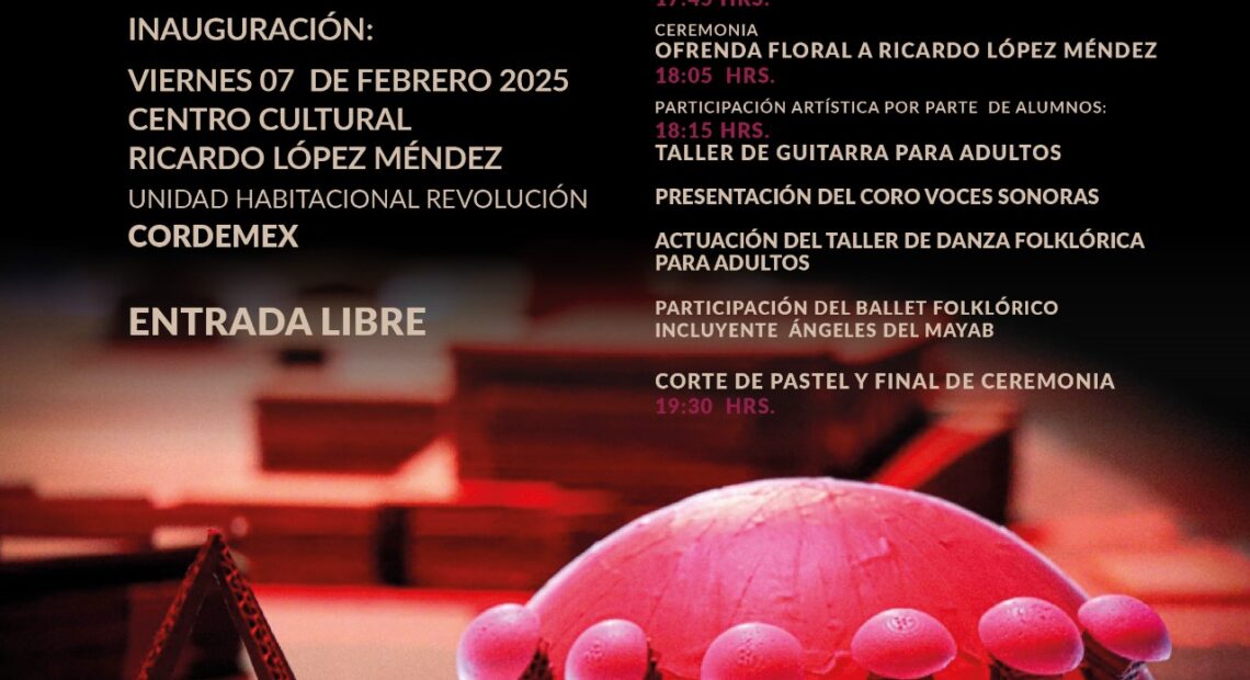 El próximo 7 de febrero, a las 5 pm, el Centro Cultural Ricardo López Méndez ubicado en el fraccionamiento de Cordemex festeja su 40 Aniversario y revalora su misión como un lugar donde las familias de la zona tienen la oportunidad de enriquecer su vida a través del aprendizaje del arte y el disfrute de sus diversas formas.