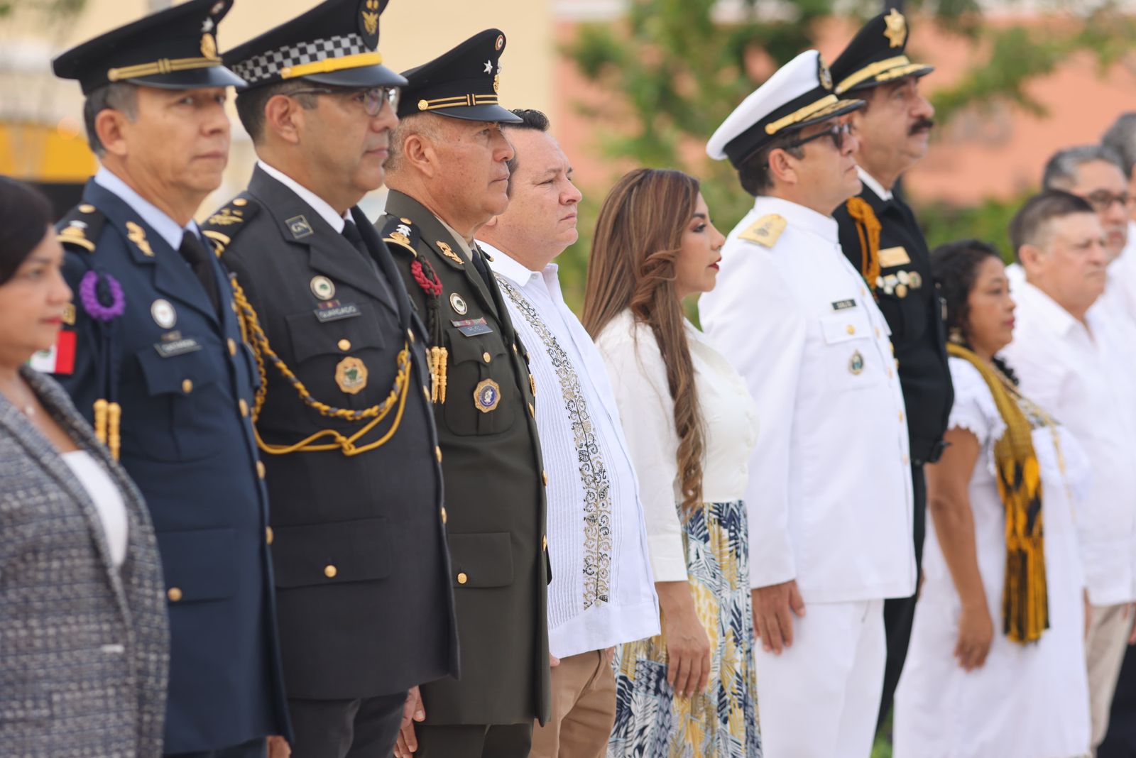 Acompañaron al Gobernador los comandantes de la 32 Zona Militar, General de Brigada Bernardo Reginaldo Reyes Herrera; de la XIII Zona Naval, Vicealmirante Héctor Rafael Solís Hernández; y de la Base Aérea Militar número 8, General de Grupo Piloto Aviador Magdaleno Castañón Muñoz; el titular de la SSP, Luis Felipe Saidén Ojeda; los diputados locales Neyda Pat Dzul y Wilmer Monforte Marfil; así como la alcaldesa de Mérida, Cecilia Patrón Laviada.