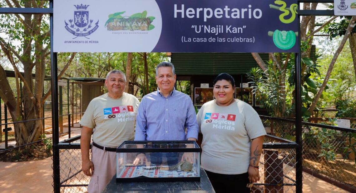 Una de las secciones más concurridas del Parque Zoológico del Bicentenario “Animaya” es el herpetario rústico U’Najil Kan (La casa de las culebras), un espacio que ha sido objeto de mejoras por parte del Ayuntamiento que encabeza Alejandro Ruz Castro, para brindar mayor comodidad y satisfacción a los amantes de la naturaleza.