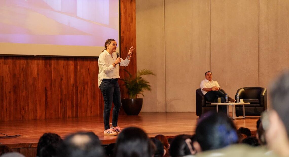 Durante un diálogo con la comunidad universitaria, junto al próximo Gobernador de Yucatán, Renán Barrera, Cecilia puso énfasis en el trabajo en equipo que realizará para cumplir su plan de gobierno “Una sola Mérida” y cumplir los compromisos de la Agenda Mérida 2050 con un abanico de oportunidades para un gobierno participativo con las juventudes.