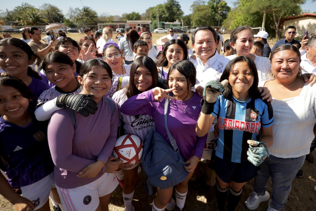 Díaz Mena, acompañado de la presidenta honoraria del Sistema para el Desarrollo Integral de las Familias (DIF) Yucatán, la maestra Wendy Méndez Naal, dio la patada inicial de esta justa deportiva que, en maya, significa “Mi espacio, mi mundo”, la cual, por primera vez, se está realizando en dicho plantel ubicado en la colonia Emiliano Zapata, al sur de la ciudad de Mérida, pero que llegará a diversos centros educativos y comunidades, llevando deporte y actividades que promuevan la cohesión social.