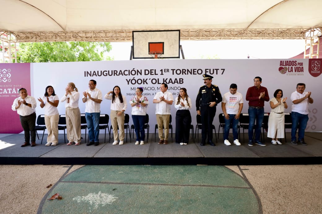 En el marco de la estrategia Aliados por la Vida, el Gobernador Joaquín Díaz Mena inauguró el primer Torneo de Fut 7 Yóok’ol Kaab en la Escuela Secundaria Técnica No. 59 “República de Ecuador”, un encuentro deportivo donde las y los jóvenes estudiantes y sus familias encontraron un espacio para la sana convivencia y la actividad física, alejándolos de conductas de riesgo como las adicciones y la delincuencia.