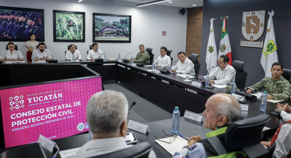Se instaló la primera sesión del Consejo Estatal de Protección Civil de Yucatán 2025, con el propósito de coordinar acciones preventivas y de respuesta ante la temporada de lluvias y ciclones tropicales, que se extiende del 1 de junio al 30 de noviembre.