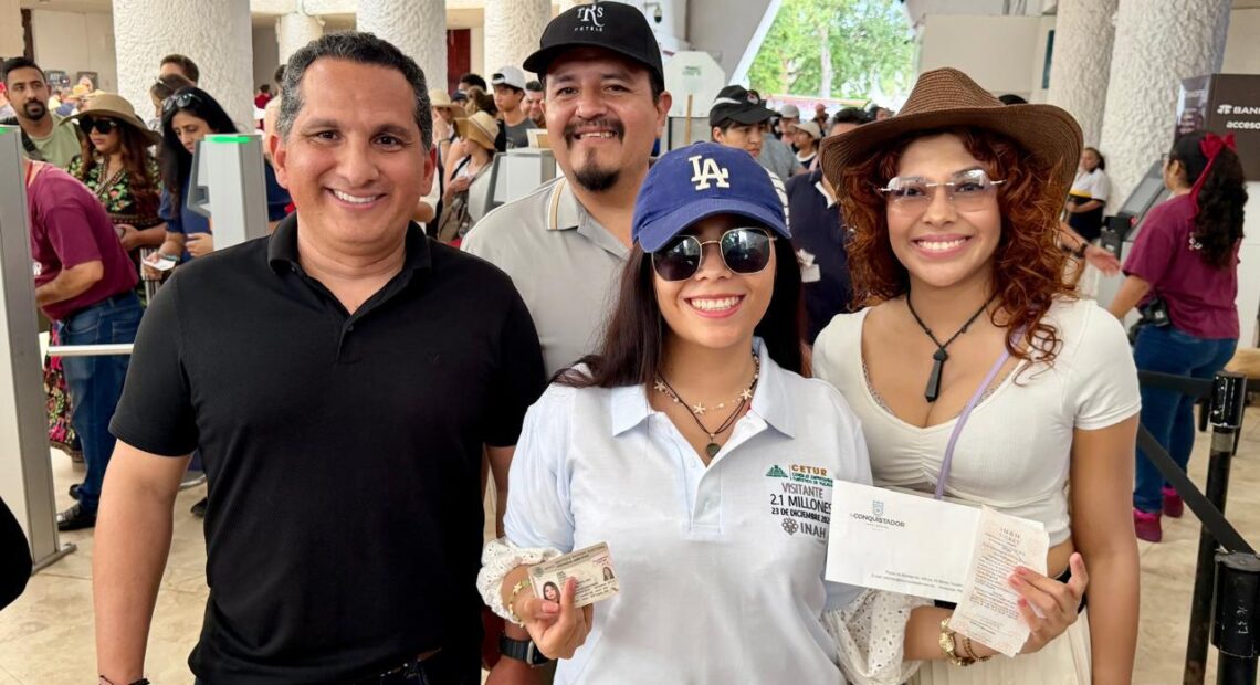 A unos días de concluir el año, la joven Dulce Guzmán Cortez se convirtió este martes en la visitante 2.1 millones que ingresa a la zona arqueológica de Chichén Itzá, Patrimonio de la Humanidad y Maravilla del Mundo, en una jornada que se caracterizó por la alta afluencia de turistas nacionales e internacionales.