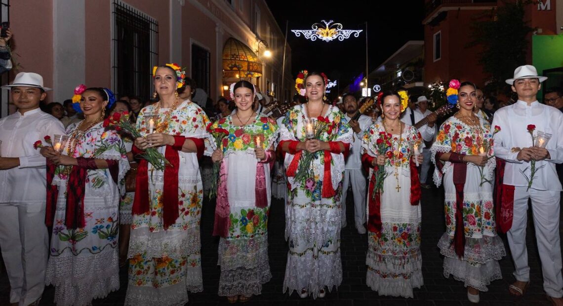 Durante el recorrido estuvo acompañada de su hija María Sofía, así como de numerosas familias meridanas y visitantes que disfrutaron de una noche mágica amenizada por decenas de trovadores de las asociaciones Pastor Cervera, Pepe Domínguez, Armando Manzanero y Guty Cárdenas, quienes deleitaron con sus voces el recorrido nocturno.
