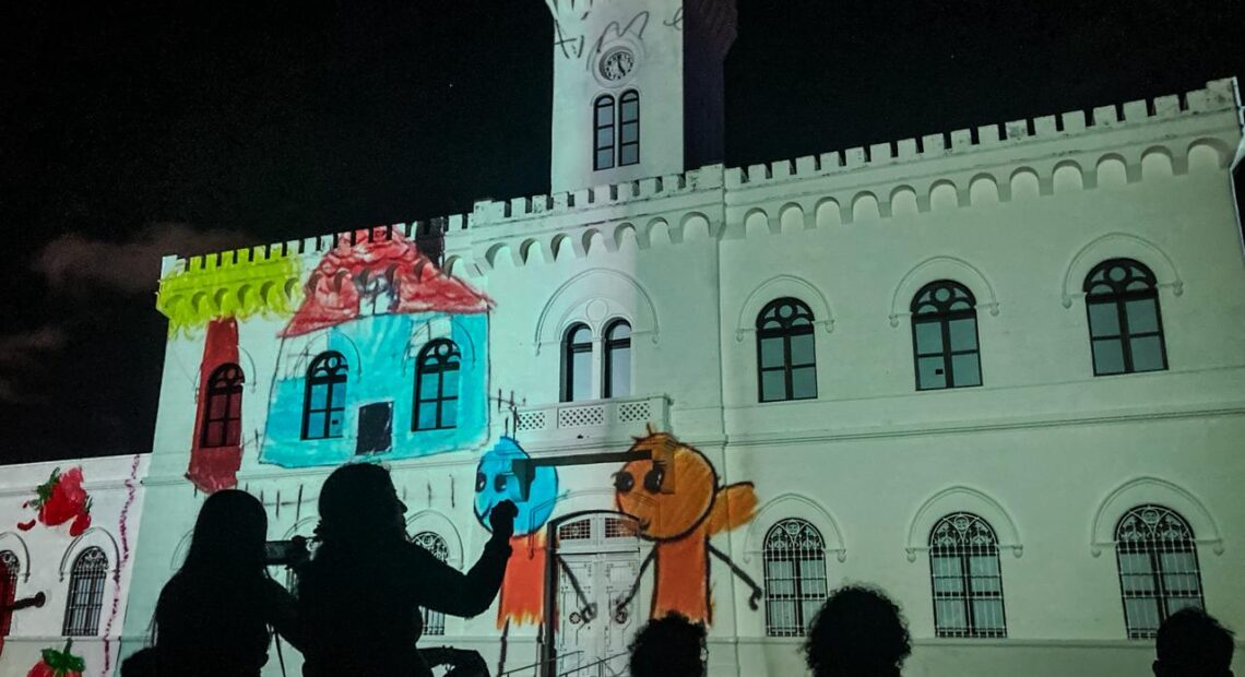 El videomapping “Mérida: Origen y Memoria” se suma a las celebraciones de la niñez con un segmento infantil que combina luz, sonido y una narrativa visual a través de un centenar de dibujos de niñas y niños yucatecos que representan el talento local, la creatividad e imaginación con representaciones de animales, paisajes y más.