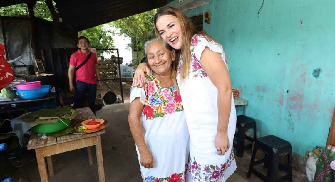 La alcaldesa tuvo la oportunidad de convivir también con la familia Ek Canché en la comisaría de Petac, quienes la recibieron con abrazos y sonrisas, y doña Fina compartió la preparación de los pibes en la terraza de su casa.