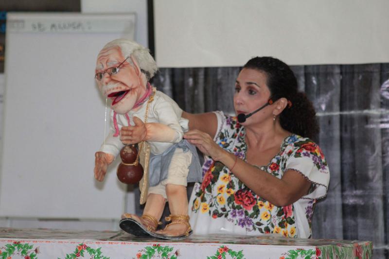 Su particular estilo de platicar causó risas entre las residentes, que tuvieron una tarde de convivencia y acercamiento con las artes, gracias a la compañía Titeradas, encargada del montaje dirigido por Andrea Herrera, en el marco del programa Alas y Raíces, coordinado en Yucatán por la Secretaría de la Cultura y las Artes (Sedeculta).