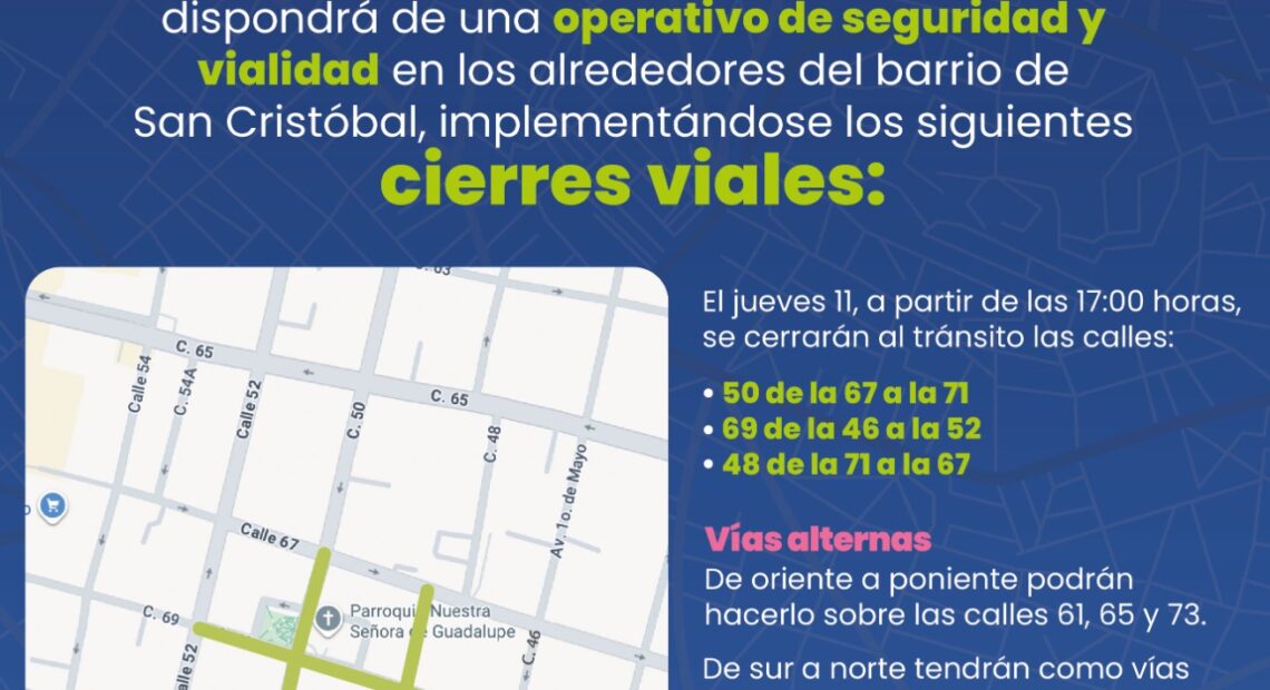 Con motivo de las festividades en honor de la Virgen de Guadalupe, el Ayuntamiento de Mérida dispuso un operativo en los alrededores del barrio de San Cristóbal para garantizar la seguridad de peregrinos y visitantes.