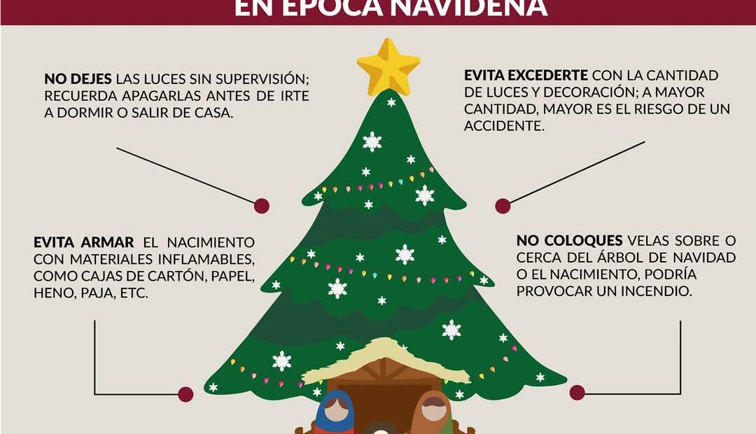 Se recomienda que, antes de instalar el árbol de Navidad y las series de luces y adornos que tradicionalmente se colocan en esta temporada, se revise que todos sus componentes se encuentren en buen estado para evitar que se genere un corto circuito.