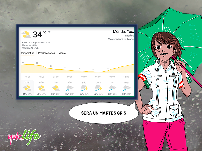 La blanca Mérida para este martes 31 de agosto se encontrará principalmente gris, ya que durante todo el día estará nublado, aunque con pocas probabilidades de lluvia. Estas incrementarán para el fin de semana. Las temperaturas irán de los 33 grados como máximas y 23 grados mínimas.