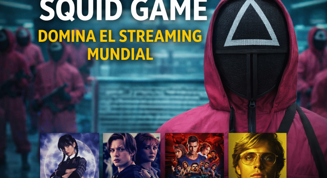 La serie surcoreana Squid Game (Temporada 1) se colocó como la producción más vista de Netflix a nivel mundial, con alrededor de 265.2 millones de reproducciones. Muy cerca se posicionó Wednesday (Temporada 1), que alcanzó 252.1 millones, reafirmando el impacto global del universo inspirado en la familia Addams.