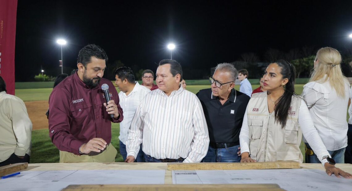 Acompañado del presidente municipal de Telchac Pueblo, Carlos Humberto Cabrera Rivera, el Gobernador destacó que, con estas obras, el campo de béisbol volverá a encenderse, a llenarse de vida y de familias que podrán disfrutar del “rey de los deportes” sin interrupciones.
