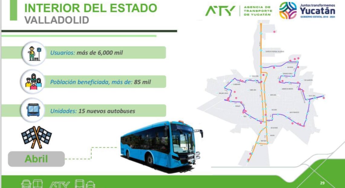 Por lo que toca a las nuevas rutas que entrarán en vigor en abril próximo en Tekax, serán 15 nuevos autobuses eléctricos que beneficiarán a más de 45 mil habitantes de esta zona.